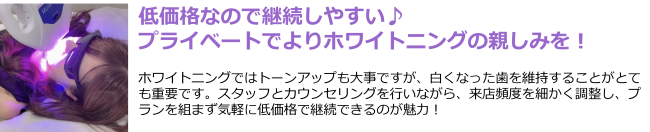 近年人気のセルフホワイトニング店にて、WhiteBerry監修により高品質なオゾンホワイトニングの導入白さはもちろん、継続して通いやすいように初回無料でスタートできます☆